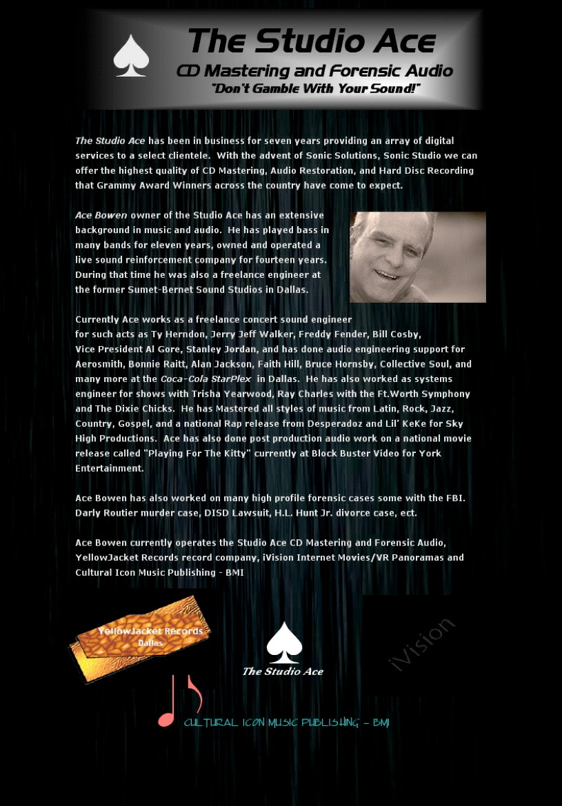The Studio Ace uses some of these features in the CD Mastering process to make the recordings more listenable for today's demanding consumers.